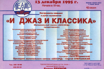 Живая музыка в «АККОРДЕ» ежедневно привлекала сотни москвичей и гостей столицы. А уже к 1995 году «АККОРД» проводил многочисленные мероприятия: мастер-классы, концерты-встречи, семинары, фестивали и конкурсы не только у себя на сцене, но и начал организовывать и проводить тематические концерты в Театре Эстрады, Большом зале Московской Государственной консерватории им. П.И. Чайковского. Ведущими концертов выступали друзья «АККОРДА» - Галина Преображенская и Алексей Баташев. Постоянными участниками проектов «АККОРДА» стали Г. Гаранян, И. Бриль, Д. Крамер, А. Кузнецов, И. Кантюков, В. Данилин, С. Григорьев, С. Владимирский и ансамбль «Гренада»…