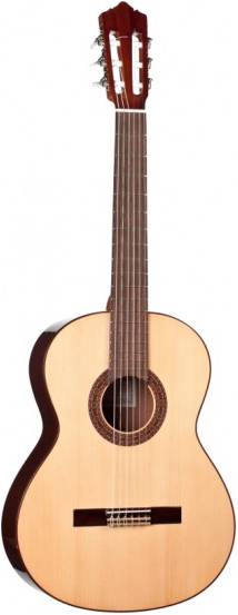 Верхняя дека выполнена из массива ели. Ель обладает звонким, глубоким и громким звуком с огромным богатством обертонов. Корпус из красного дерева - это еще один признак качественного инструмента. Колковый механизм имеет защитное никелированное покрытие"